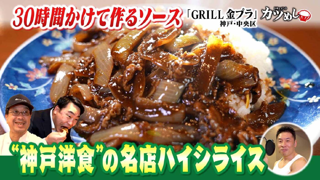 神戸市にある三宮センタープラザの地下に店を構える洋食店「GRILL金プラ」。1941年に現店主の祖父が新開地で創業し、父が分家として独立するも阪神・淡路大震災で閉店。28年前に3代目の現店主が現在の店をオープンした。約20種類あるメニューの中でも名物なのが「ハイシライス」(990円)。見た目は「ハヤシライス」そっくりだが、一説では「ハイシライス」の言葉が派生して「ハヤシライス」になったとされている。(※諸説あり)このハイシライスに使われる素のソースは、小麦や牛タン、数種類の野菜などを30時間かけて調理されている。店主がほぼ一人で調理を担当しているため1日20人前ほどしか作れず、開店から1時間ほどで売り切れてしまうことも多いという。また昔ながらの卵をしっかりと焼いたオムライスは、牛バラ肉を使うことで濃厚な味わいに仕上がっていて、こちらも人気の一品。ほかにもエビフライやコロッケなどが入った定食もラインナップされている。何年にもわたって足しげく通うファンが多い、神戸の人気洋食店に密着。 ナレーション:なかやまきんに君 (2025年4月3日放送 MBSテレビ「よんチャンTV」内『カツめし』より)