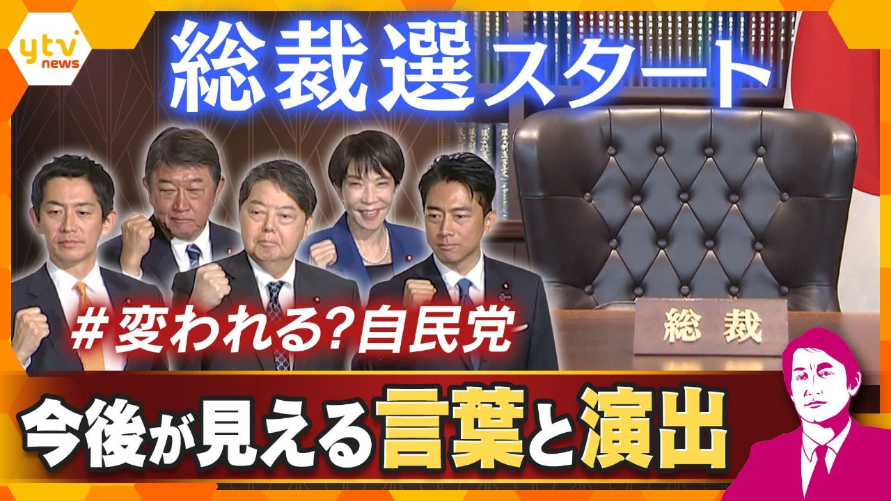 石破総理の辞任表明を受け、自民党総裁選に向けて出馬の意向を示す候補者がいる中、議員たちは自身の強みや意外な一面を写真などを通じて発信しています。国民の暮らしに寄り添う政策などが求められる今、次期総裁に誰が選ばれるのか。党員のみならず国民の注目を集める重要な選挙を、高岡解説委員が徹底解説します。 (かんさい情報ネットten. 月曜・火曜は「タカオカ目線」 2025年9月9日放送)