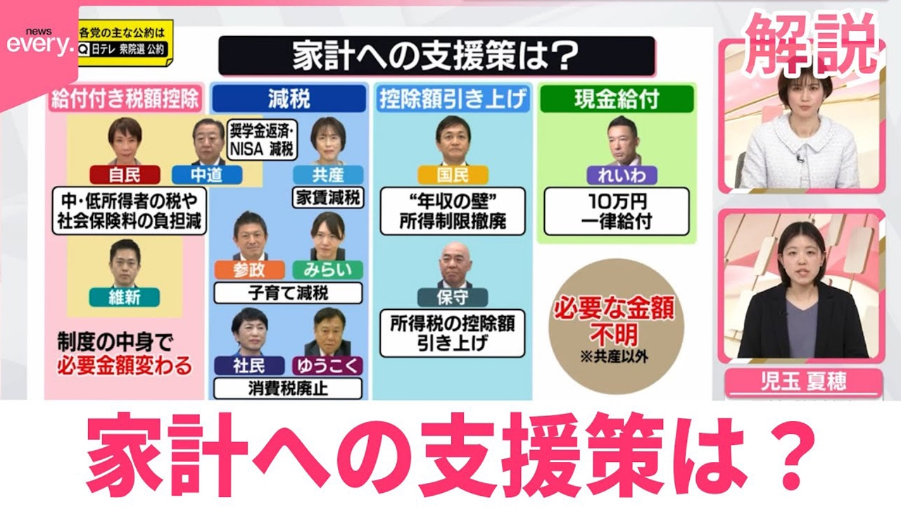 『news every.』では衆議院選挙の投票先を考えるきっかけになるような情報を、連日お伝えしています。2日は「家計への支援策」について、日本テレビ経済部・財務省担当の児玉夏穂記者と詳しく解説します。 (2026年2月2日放送「news every.」より)