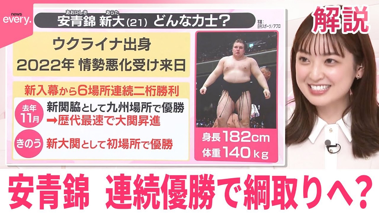 大相撲初場所で新大関・安青錦が、2場所連続で優勝しました。今回の#みんなのギモンでは、「安青錦 連続優勝で綱取りへ?」をテーマに解説します。 (2026年1月26日放送「news every.」より)