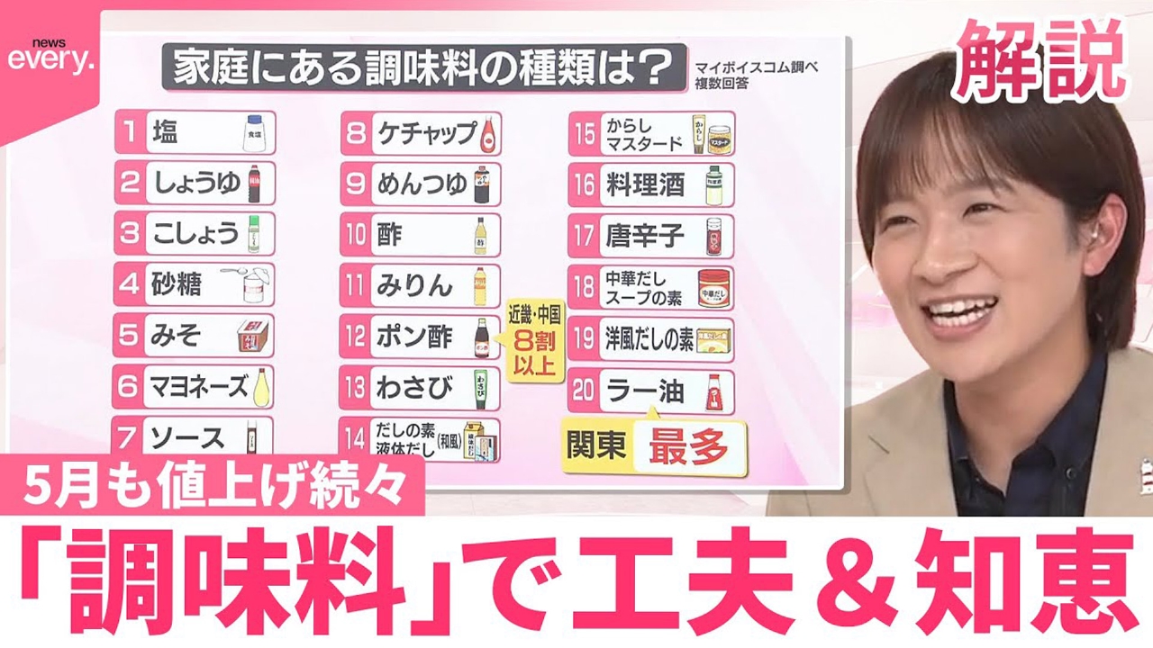 「news every.」の森圭介キャスターが、ニュースの「なるほどッ!」な情報をお伝えする「なるほどッ!」。30日のテーマは、「値上げの波を『調味料』で乗り切る」です。 (2025年4月30日放送「news every.」より)