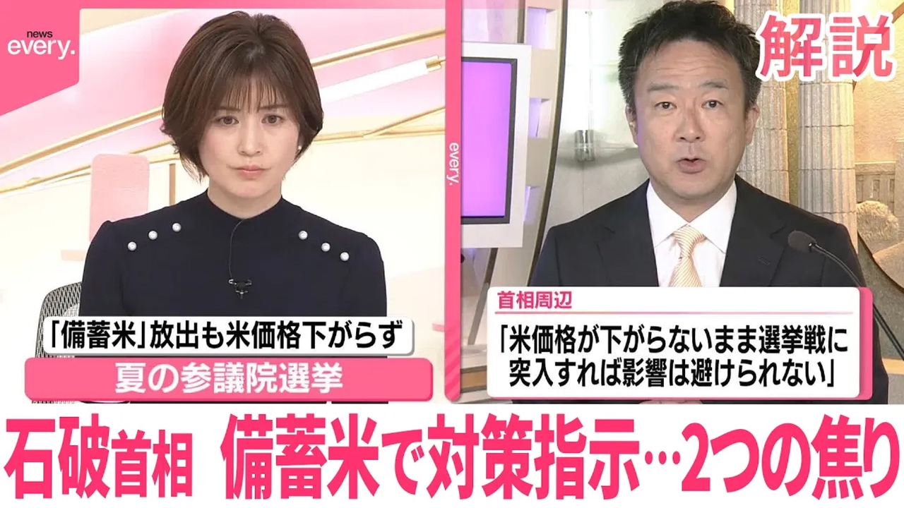 石破首相は、政府備蓄米を放出した後もコメの価格が下がらない状況を受け、自民党に対して対策をまとめるよう指示しました。このタイミングでコメの価格対策を出した石破首相の狙いはどこにあるのでしょうか? (2025年5月7日放送「news every.」より)