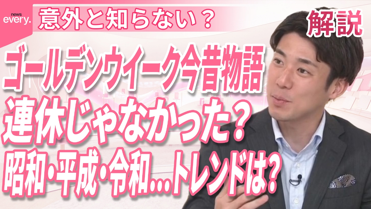 「news every.」の森圭介キャスターが、ニュースの「なるほどッ!」な情報をお伝えする「なるほどッ!」。29日のテーマは、「意外と知らない? ゴールデンウイーク今昔物語」です。 (2025年4月29日放送「news every.」より)