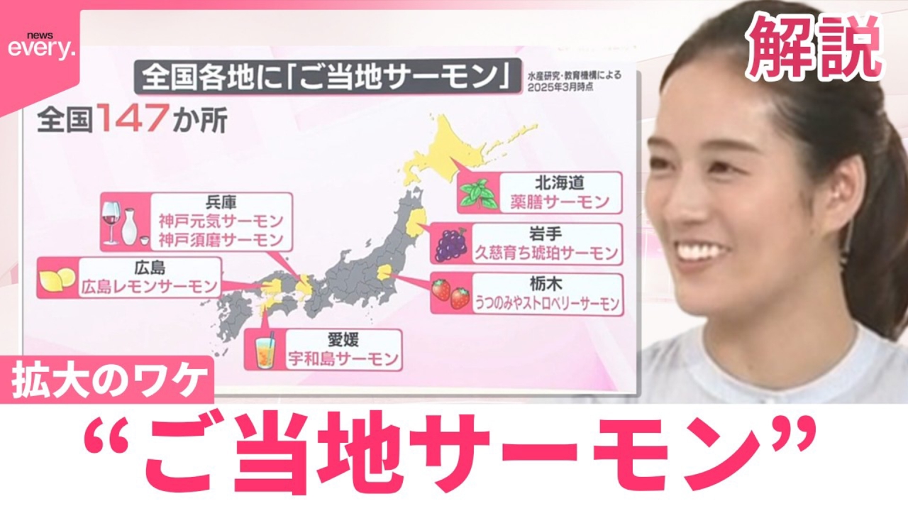 「news every.」の森圭介キャスターが、ニュースの「なるほどッ!」な情報をお伝えする「なるほどッ!」。25日のテーマは、「“ご当地サーモン”拡大のワケ」です。 (2025年4月25日放送「news every.」より)