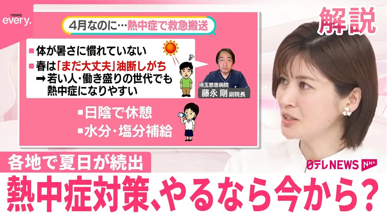 21日も各地で夏日が続出しました。20日には、鳥取県の倉吉市で地区の草刈り作業に参加していた53歳の男性が心肺停止の状態で倒れているところを発見され、救急搬送されました。熱中症の疑いがあるということです。20日、倉吉では最高気温23℃でした。また、関東でもすでに熱中症で患者が搬送されています。 (2025年4月21日放送「news every.」より)
