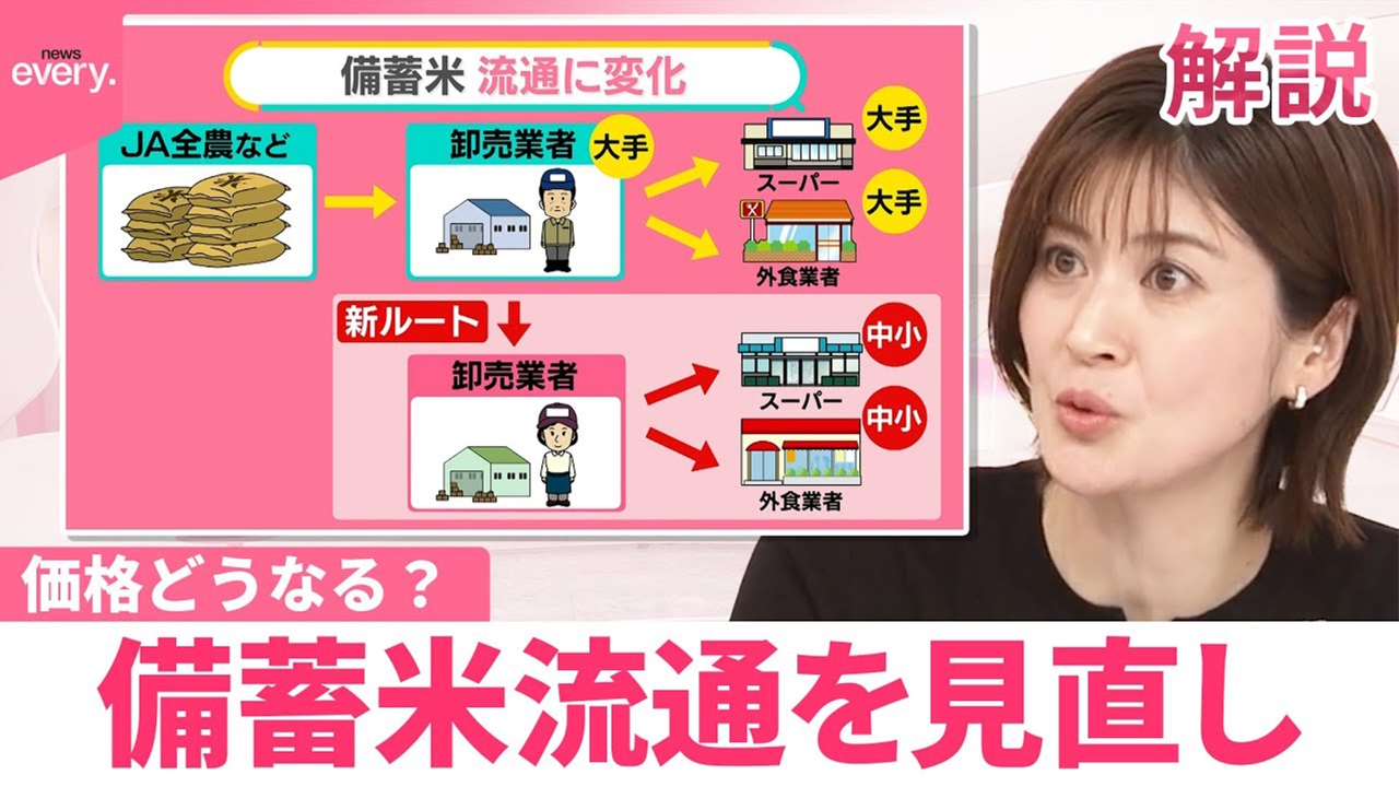 23日、備蓄米放出に向けた3回目の入札が始まりましたが、今回の入札分から流通の仕組みが見直されることになります。そこで今回の#みんなのギモンでは、「備蓄米流通を見直し 価格どうなる?」をテーマに解説します。 (2025年4月23日放送「news every.」より)