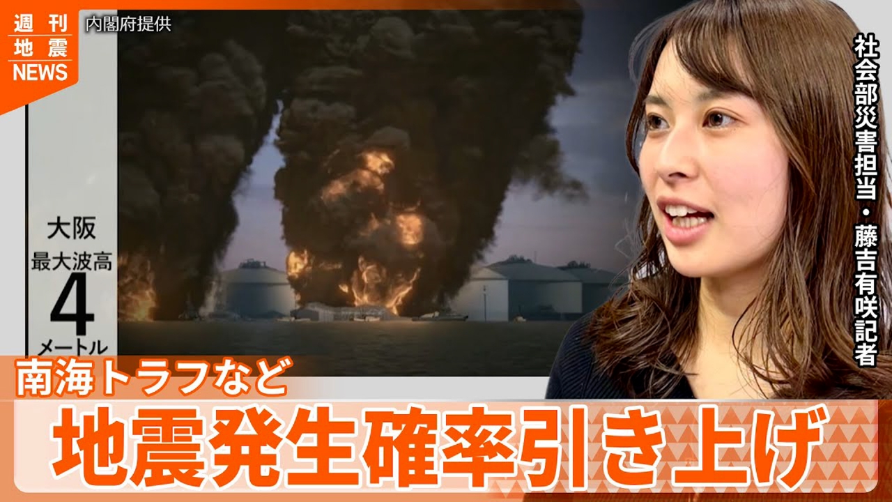 最大でマグニチュード8~9クラスとされる「南海トラフ巨大地震」の30年以内の発生確率が「80%程度」に更新されました。宮崎県で震度5弱を観測した13日の地震の影響はあるのか。また、全国で巨大地震が発生する確率は? 社会部災害担当・藤吉有咲記者が解説します。【週刊地震ニュース】 (2025年1月20日放送)