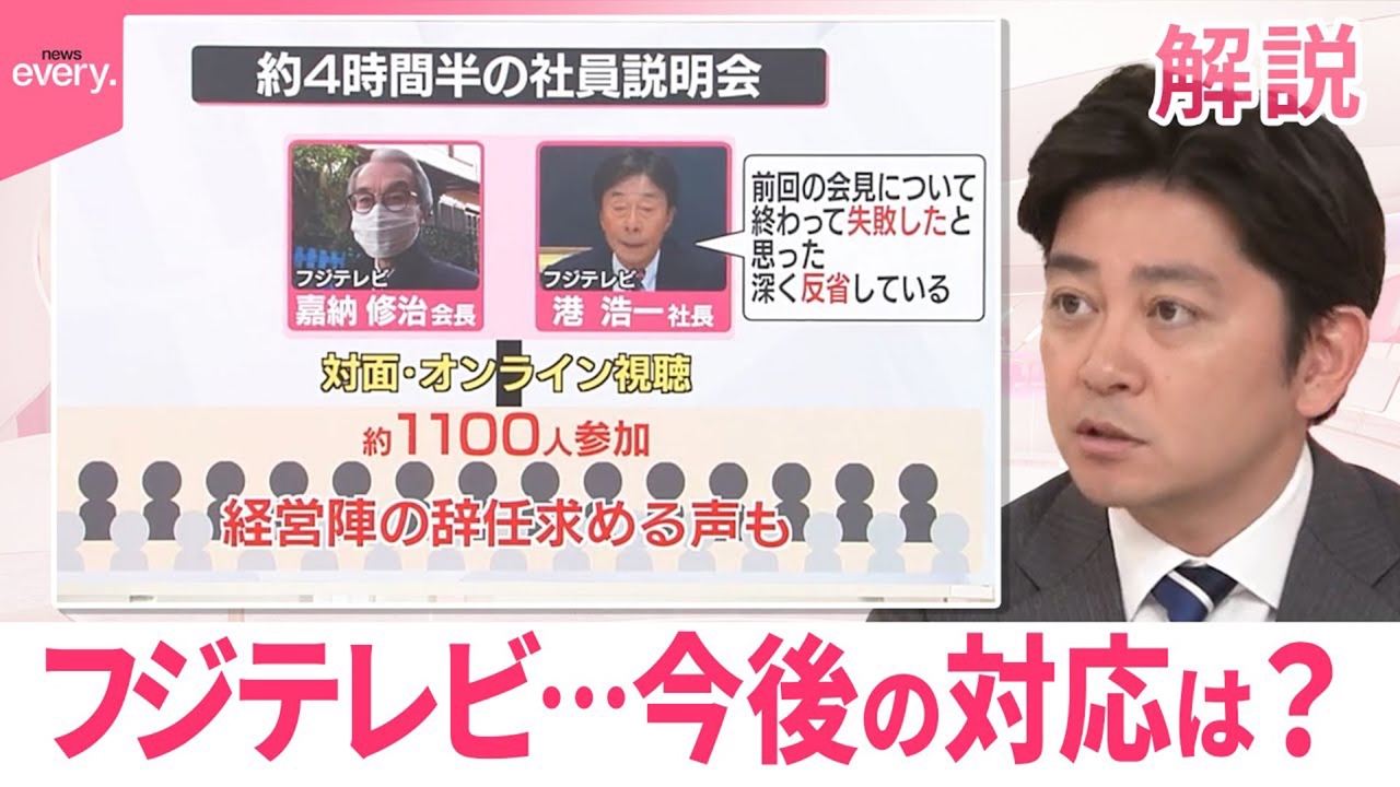 中居正広さんの女性トラブルをめぐる一連の問題で、フジテレビは23日に、第三者委員会の設置や27日にオープンな形で記者会見を開催することを発表しました。また、社員への説明会も行いました。これらについて、企業のリスクマネジメントに詳しい桜美林大学の西山守准教授に聞きました。 (2025年1月24日放送「news every.」より)