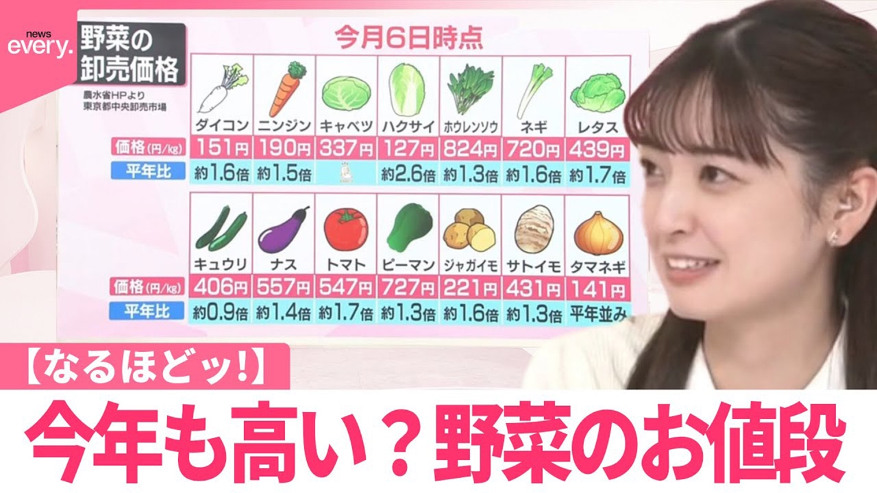 「news every.」の森圭介キャスターが、ニュースの「なるほどッ!」な情報をお伝えする「なるほどッ!」。7日のテーマは、「今年も高い?野菜のお値段」です。 (2025年1月7日放送「news every.」より)