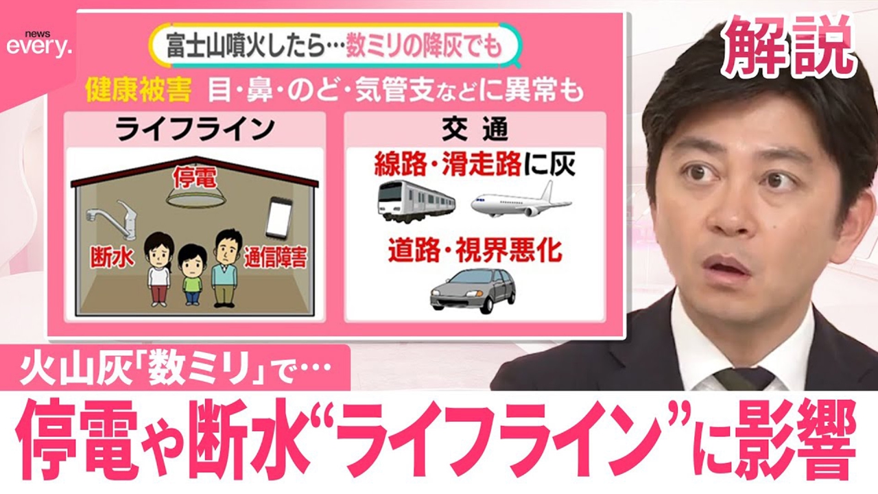 自然災害の多い日本。地震とともに警戒が必要なのが火山災害です。火山灰が降ると影響は広範囲に及び、ライフラインに大きな被害をもたらします。富士山が噴火すれば、東京・新宿でも10センチの降灰が想定されています。火山灰の影響や対策を考えます。(2025年1月14日放送「news every.」より)