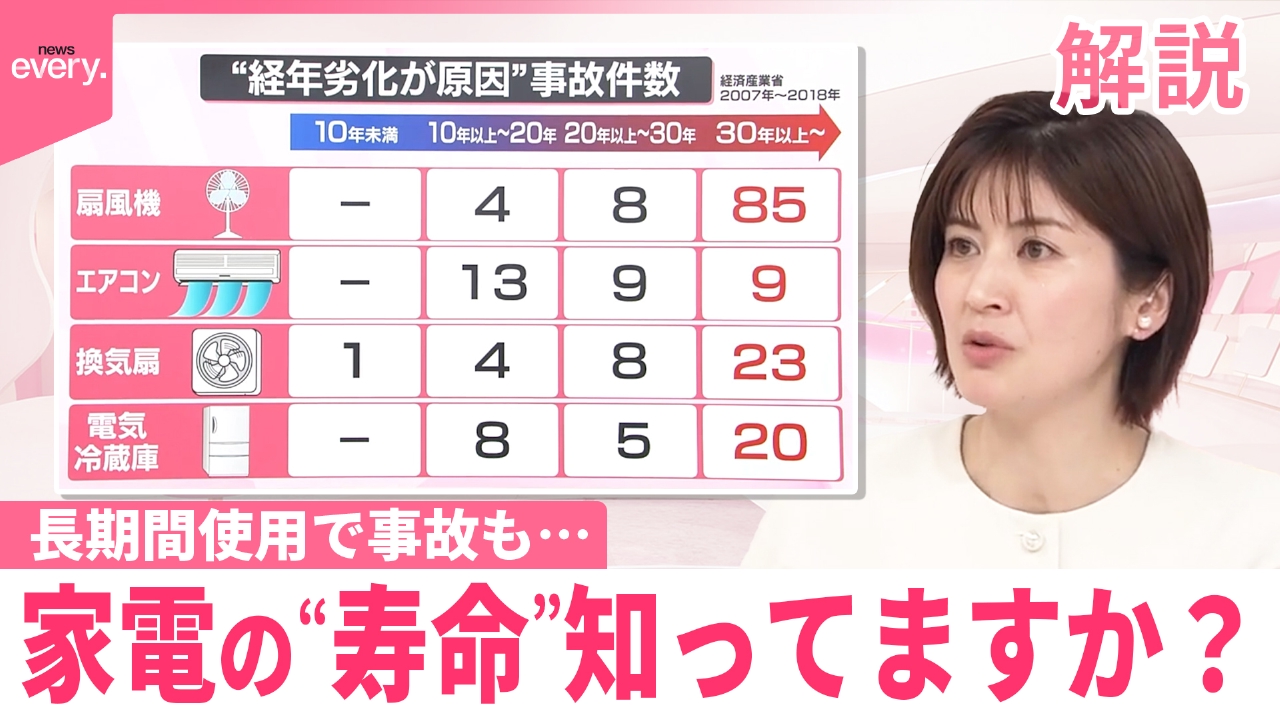 「news every.」の森圭介キャスターが、ニュースの「なるほどッ!」な情報をお伝えする「なるほどッ!」。今回のテーマは「おうちの家電、“寿命”を知ってますか?」です。家電を長く使うとトラブルも起きがちですが、命にかかわる事故も起きています。 (2025年1月22日放送「news every. 」より)