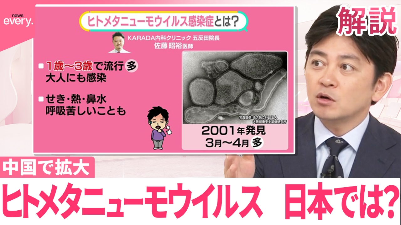 中国で、ヒトメタニューモウイルスに感染する子どもが増えています。春節を控えるだけに、SNSでは日本への流入を心配する声も。ただ実際はありふれた感染症で、症状も風邪と大差なく、過度に恐れる必要はなさそうです。基本的な感染対策を徹底しましょう。 (2025年1月8日放送「news every.」より)
