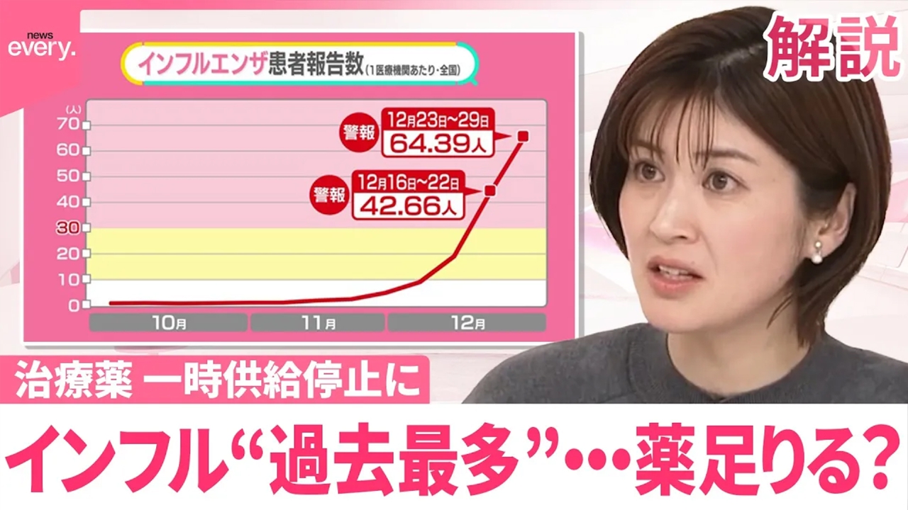 過去最多の水準でインフルエンザが猛威を振るう中、一部の治療薬の供給が一時的に停止されることになりました。沢井製薬が製造するタミフル後発薬の「オセルタミビル」で、どれほどの影響があるのでしょうか?子どもが服用できる薬についても考えます。 (2025年1月9日放送「news every.」より)