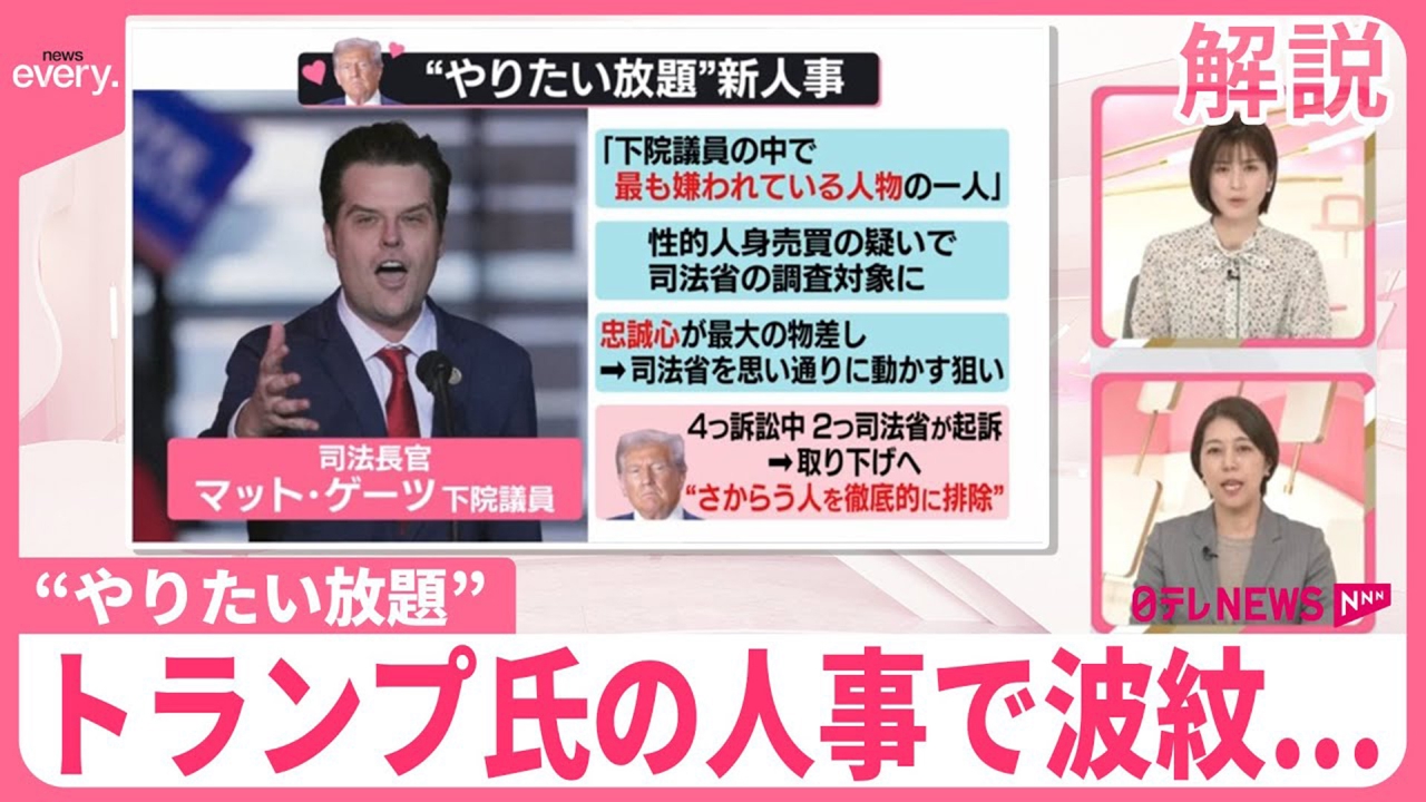 トランプ次期大統領の打ち出す人事が、連日、波紋を広げています。日本テレビ・小林史国際部長が解説します。 (2024年11月14日放送「news every.」より)