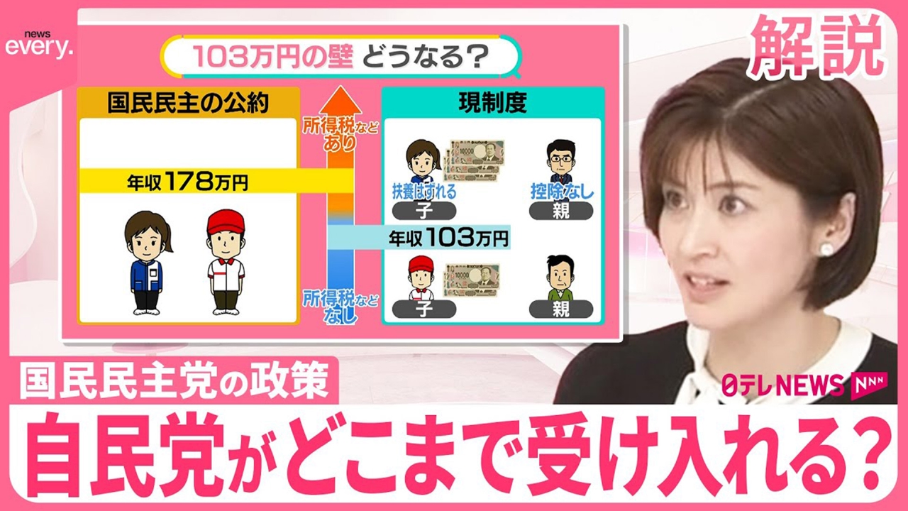 与党が過半数を割り、政治が不安定化する中、私たちの生活に直結する政策の行方が気になります。そこで、今回の#みんなのギモンでは、「手取り増、実現できる?」をテーマに、次のポイントを中心に解説します。 ●働き控えは?「103万円の壁」 ●「7.6兆円」税収減…どうする? (2024年10月31日放送「news every.」より)