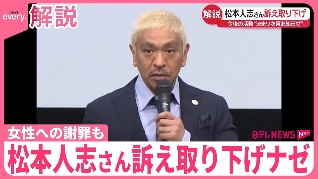 ダウンタウンの松本人志さんが記事で名誉を傷つけられたとして「週刊文春」側を訴えた裁判について、松本人志さんが8日、訴えを取り下げました。 (2024年11月8日放送「news every.」より)