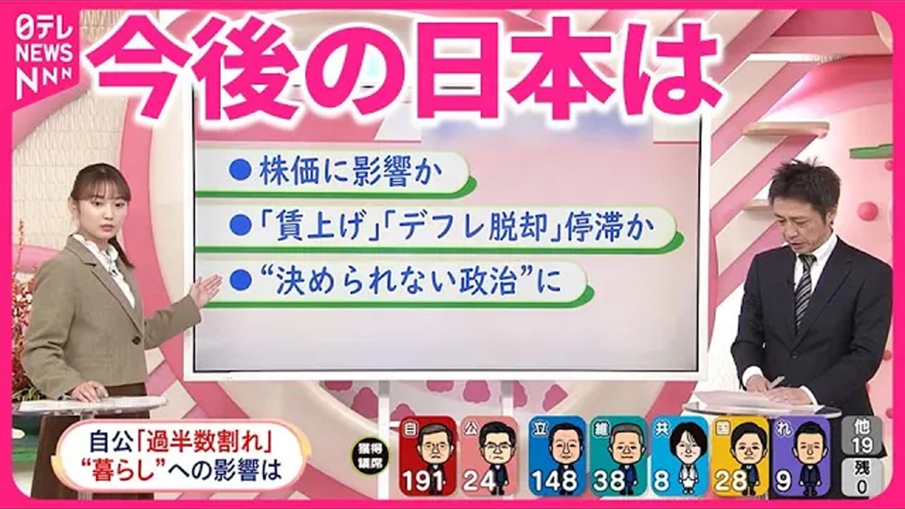 27日に行われた第50回衆議院選挙で、自民党は大きく議席を減らし、目標としていた自民・公明の与党での過半数を下回りました。自公政権が総選挙で過半数を割り込むのは15年ぶりです。今後の石破政権の運営はどうなっていくのでしょうか? (2024年10月28日放送「news every.」より)