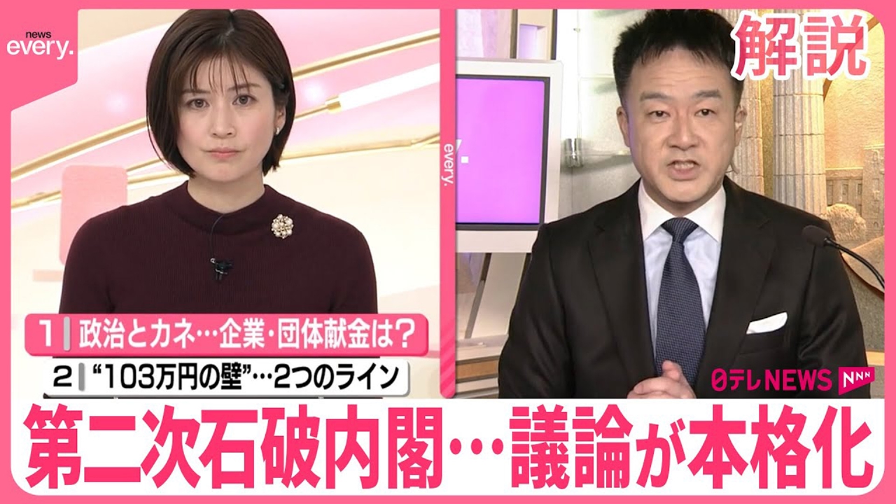 第二次石破内閣発足から一夜明け、「政治とカネ」、そして「103万円の壁」の議論が12日から本格化しています。この2つのテーマのどこに注目していけばいいか、日本テレビ政治部官邸キャップ・平本典昭記者が解説します。 (2024年11月12日放送「news every.」より)