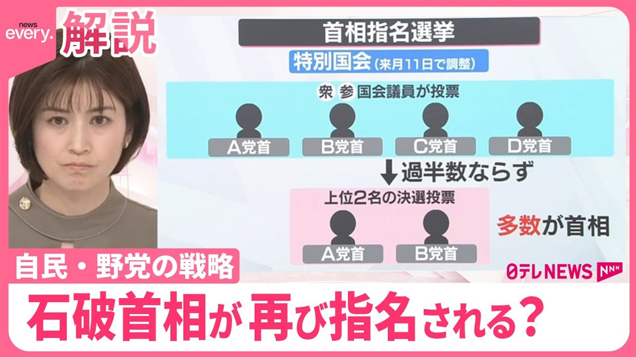 与党が過半数割れした中、11月11日に召集する方向で最終調整されている特別国会で首相指名選挙が行われます。苦境に立たされた石破首相が再び首相に指名されるのか。一方、野党第一党である立憲民主党はどう臨むのか。注目されているのが国民民主党です。 (2024年10月29日放送「news every.」より)