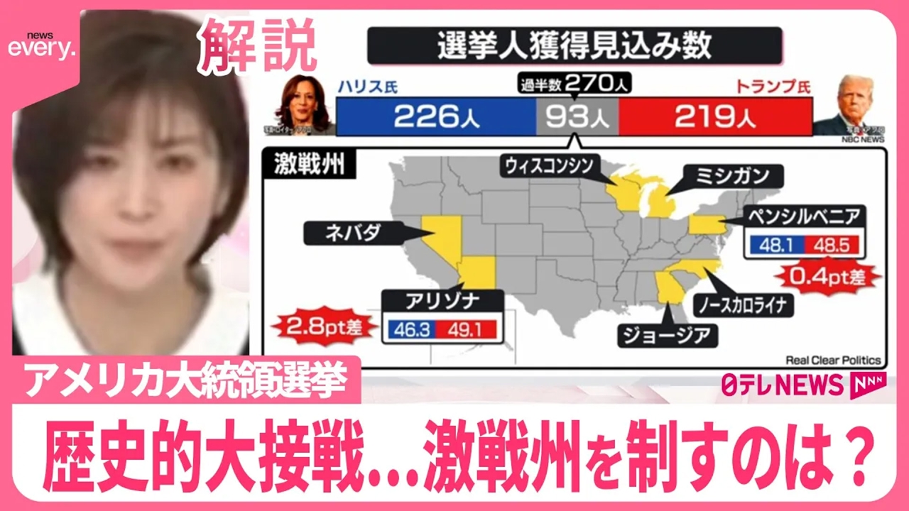 まれにみる大接戦のアメリカ大統領選。5日は日本テレビ国際部・解説委員で元ワシントン支局長だった近野宏明記者が解説します。 (2024年11月5日放送「news every.」より)