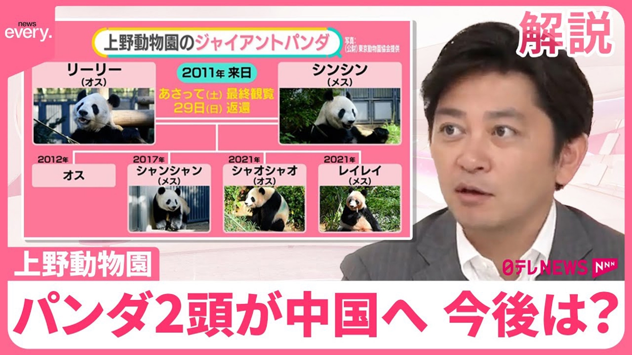 上野動物園のジャイアントパンダ「リーリー」と「シンシン」が29日、高齢と病気のため中国に返還されることになり、ファンからは別れを惜しむ声が相次ぎます。中国からレンタルをしている日本国内のパンダは今後6頭となりますが、繁殖は難しい状況です。 (2024年9月26日放送「news every.」より)