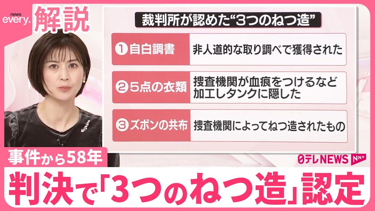 事件から58年。静岡県で起きた一家4人殺害事件の再審=やり直し裁判で静岡地裁は、死刑が確定していた袴田巌さんに、無罪判決を言い渡しました。裁判で最大の争点となったのは、赤みのある血痕が付いた5点の衣類です。 (2024年9月26日放送「news every.」より)