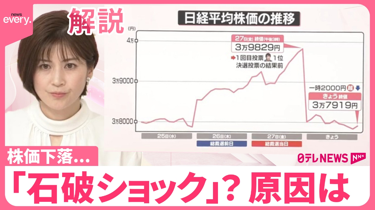 自民党・石破総裁誕生後の経済の動きですが、日経平均株価は大きく下落しました。その原因や今後の見通しについて、日本テレビ経済部、日銀・金融担当キャップの渡邊翔記者が解説します。 (2024年9月30日放送「news every.」より)
