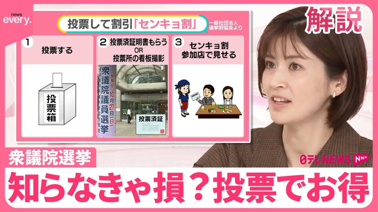 27日の衆議院選挙を前に期日前投票が始まっていますが、お住まいの地域によって案内書がまだ届いていないことも。ところが投票所入場券を持っていなくても、実は投票はできます。さらに、投票したあとに利用できるお得な「センキョ割」にも注目です。(2024年10月22日放送「news every.」より)