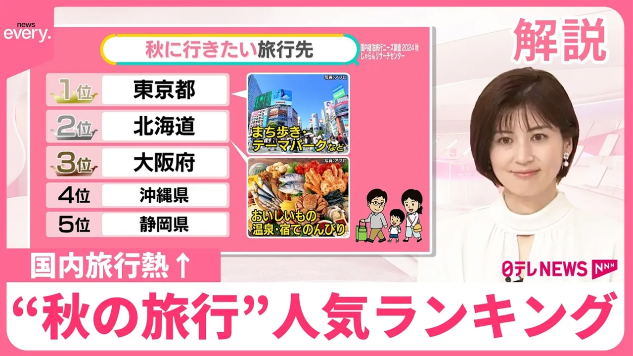 徐々に暑さが和らぎ、いよいよ秋の行楽シーズン。じゃらんリサーチセンターは、秋の旅行先として人気の都道府県を発表しました。「海外より国内旅行を」と考える人も多く、背景には何があるのでしょうか? アナリストにこの秋のトレンドを聞きました。 (2024年9月30日放送「news every.」より)