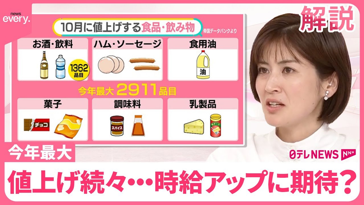 10月に入り、今年最大の賃上げラッシュが到来。ペットボトル飲料やハム・ソーセージ、菓子など対象は幅広く、コメも値上がりしました。最低賃金の引き上げなど、背景には人件費の問題もあります。首相が代わり、「時給1500円」は近づくのでしょうか? (2024年10月1日放送「news every.」より)