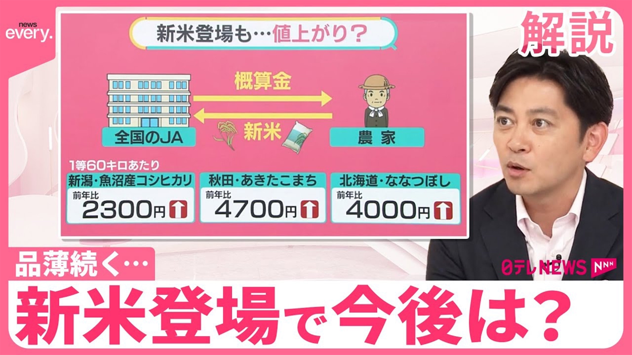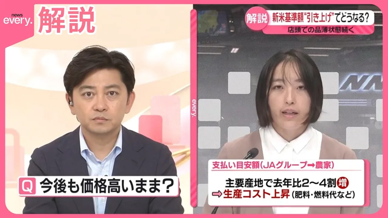 これから収穫が本格化する新米の価格の基準となる金額が、主要産地で2割から4割の引き上げとなることがわかりました。 経済部・農水省担当の新倉久美子記者が解説します。 (2024年9月2日放送「news every.」より)
