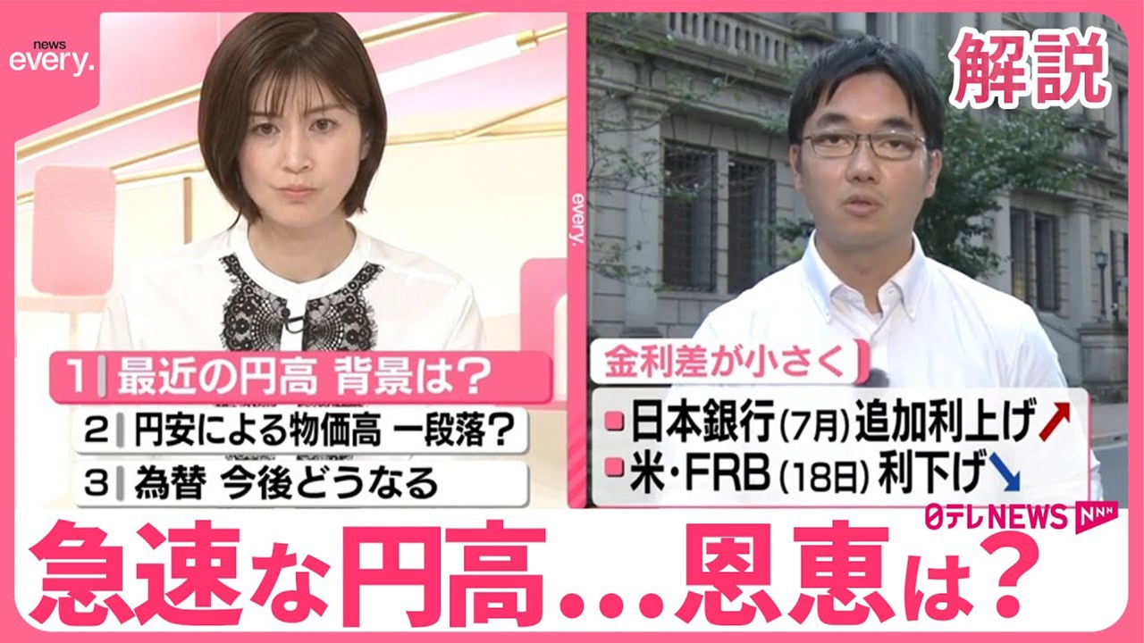 日本銀行は20日まで行った金融政策を決める会合で、政策金利を現在の0.25%程度に据え置くことを決めました。前回7月の会合で今年2度目の利上げに踏み切りましたが、今回は利上げが経済・物価に与える影響を引き続き見極める姿勢を示した形です。経済部・日銀担当キャップの渡邊翔記者が、為替に関する3つのギモンについて解説します。 (2024年9月20日放送「news every.」より)