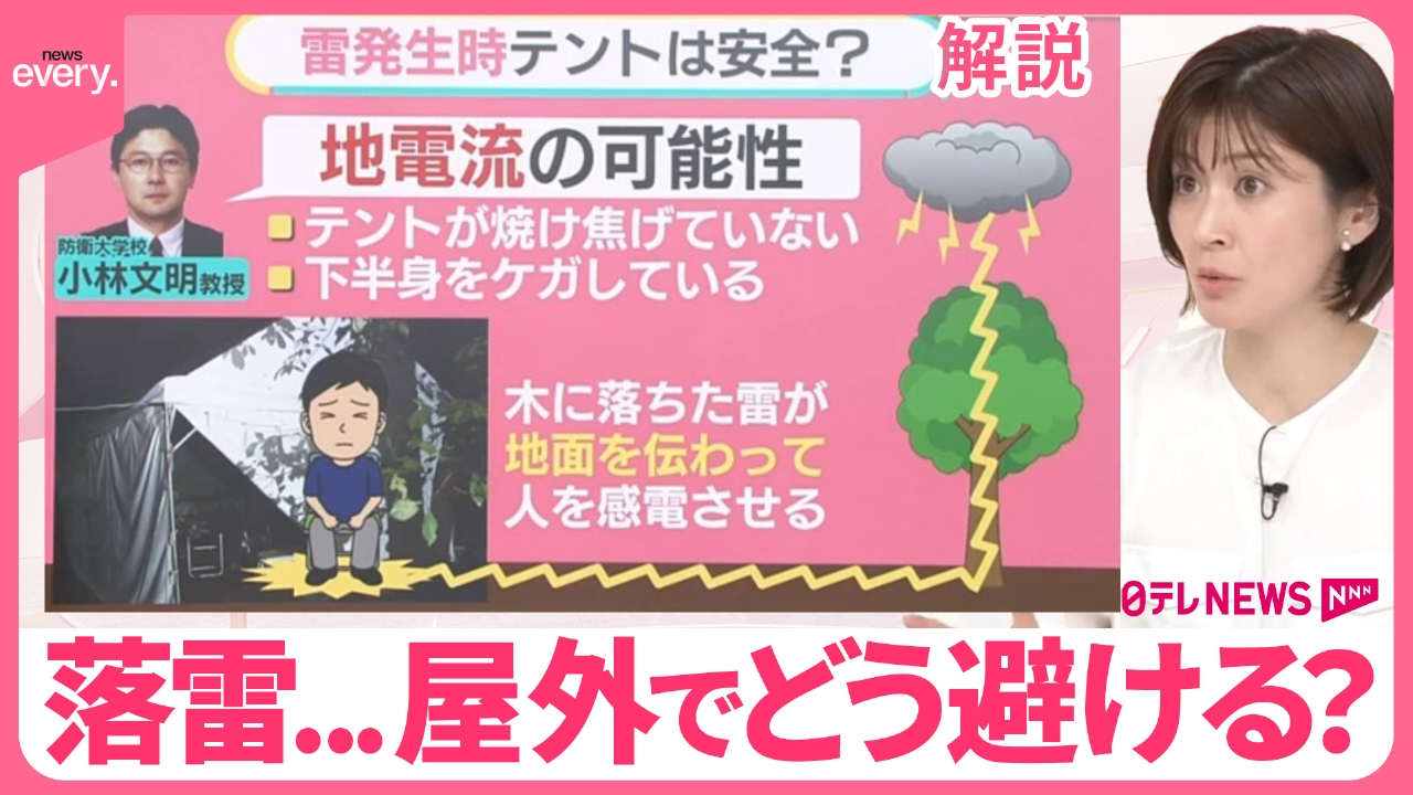 音楽イベントが開かれていた栃木・真岡市の公園で8日、落雷があり、スタッフが負傷して病院に搬送されました。避雷針が設置され避難エリアもあったにもかかわらず、なぜケガ人が出たのでしょうか。雷が鳴った時に注意すべき行動や対策を専門家に聞きました。 (2024年9月9日放送「news every.」より)