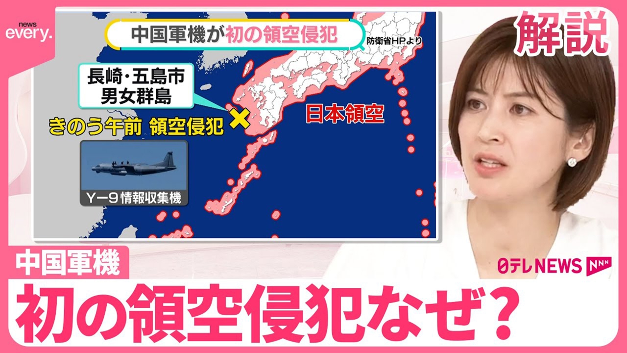 26日、長崎・五島市の群島沖の領空に、中国軍の情報収集機が侵入。中国の軍用機による日本の領空侵犯が確認されるのは初めてです。中国側の意図を見極めるのは難しいですが、専門家は2つの可能性を指摘します。日中両国の政府はどう反応したのでしょうか。 (2024年8月27日放送「news every.」より)