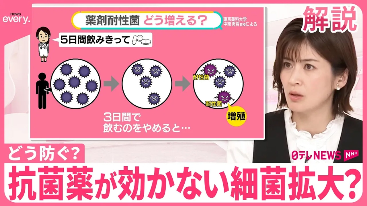 抗菌薬(抗生物質)が効かない細菌「薬剤耐性菌」が増えています。海外の研究チームが、世界中で多くの死者が出る可能性があると明らかにしました。この菌はどう生まれ、増えるのか医師に聞きました。防ぐポイントの1つは、「薬をきちんと正しく飲む」です。 (2024年9月18日放送「news every.」より)