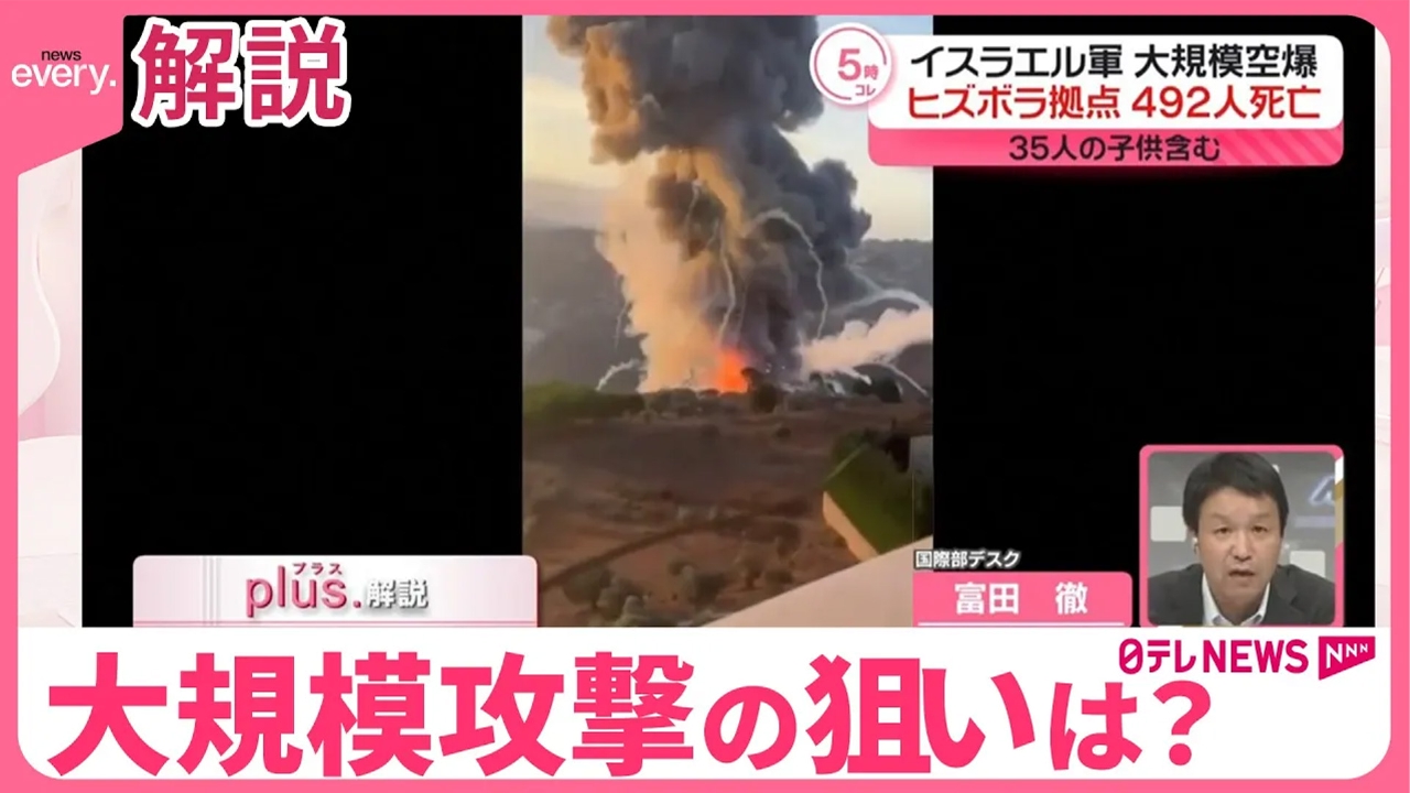 イスラエル軍は23日、レバノンのイスラム教シーア派組織ヒズボラの拠点を標的に大規模な空爆を行い、これまでに492人が死亡したということです。元カイロ支局長の富田徹国際部デスクに聞きます。 (2024年9月24日放送「news every.」より)