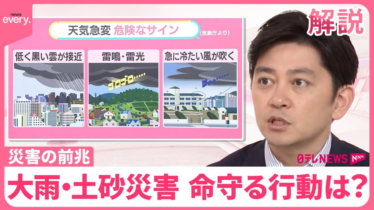 山形県などでは25日、川が氾濫したり「緊急安全確保」が発令されたりするなど、大雨による災害リスクが高まって危険な状況となりました。埼玉県では24日、突風による被害が続出。土砂災害や竜巻をもたらす前兆現象、そして命を守る避難方法を考えます。 (2024年7月25日放送「news every.」より)