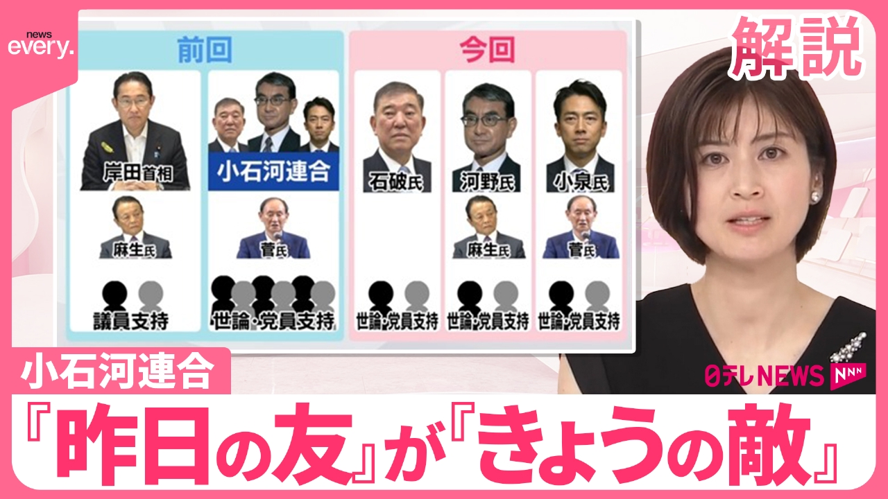 来月の自民党総裁選挙に出馬する意向を固めた小泉元環境相が21日、報道陣の前に姿を現しましたが、いつ出馬表明をするかは答えませんでした。その小泉元環境相について、3年前の総裁選と関係が変わった「小石河連合」や小泉元環境相が抱える“焦り”について、日本テレビ政治部官邸キャップ・平本典昭記者が解説します。 (2024年8月21日放送「news every.」より)