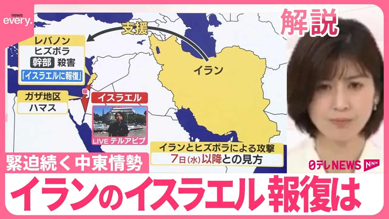 中東情勢が、緊迫の度合いを増しています。緊張が高まるイスラエルのテルアビブから、後閑駿一記者が解説します。 (2024年8月6日放送「news every.」より)