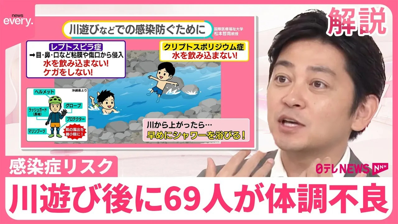 熊本県内で、川遊びの後に体調不良を訴え、受診した人が69人に上りました。医師は、寄生虫や細菌に由来し、川の水が原因となる感染症の可能性を指摘しています。どんなシチュエーションで感染する恐れがあり、どう対策すればいいのでしょうか? (2024年8月21日放送「news every.」より)
