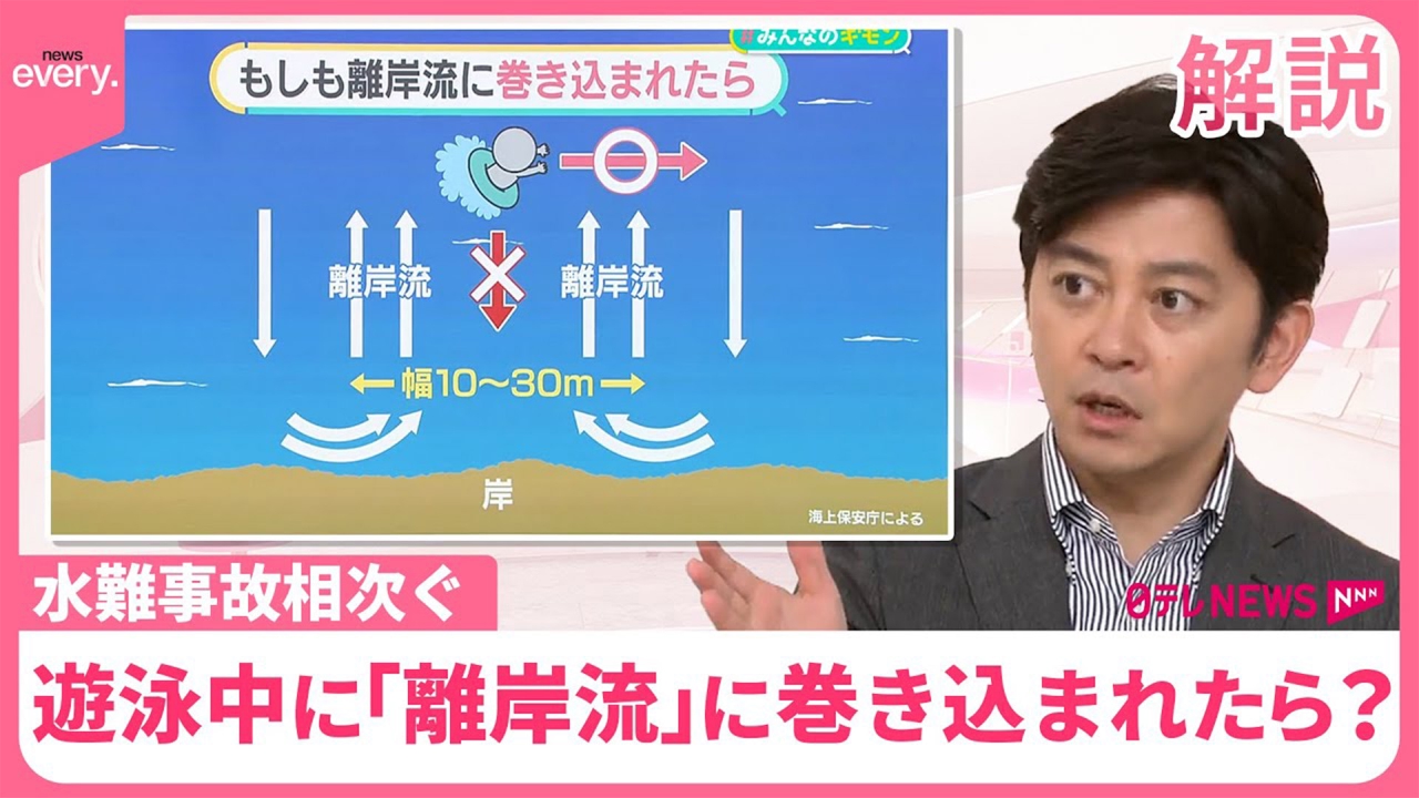 海や川での水難事故が全国で相次いでいます。10~12日の3連休では、助けようとして事故に遭ったケースが多くありました。沖へと向かう強い潮の流れである「離岸流」が発生しやすい場所やその対処法、浮き具で流される危険性などについて考えます。 (2024年8月13日放送「news every.」より)