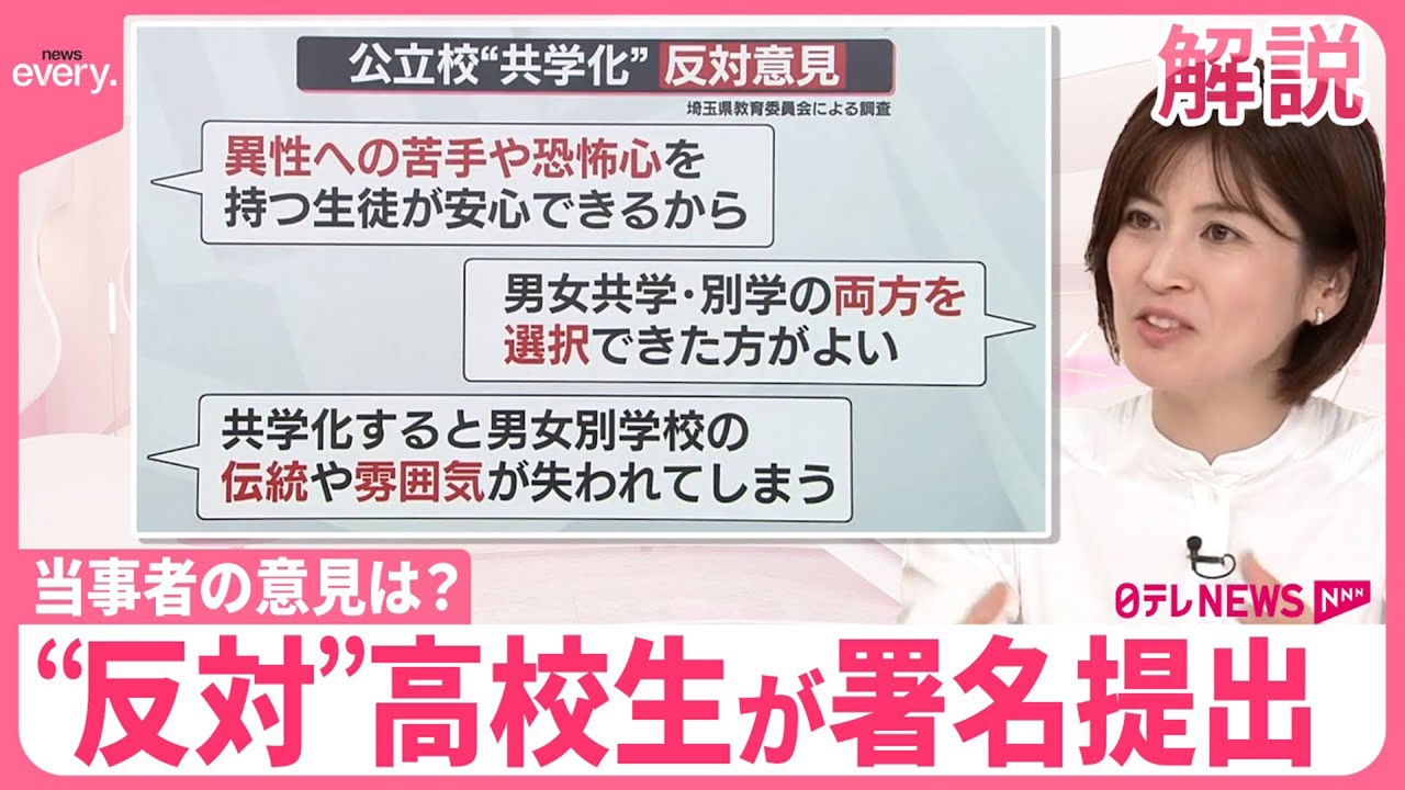 埼玉県で県立高校の男子校・女子校を共学化するかどうかが議論されています。県教育委員会は「主体的に共学化を推進していく」という方針の報告書をまとめました。公立校の共学化について、整理します。 (2024年8月22日放送「news every.」より)