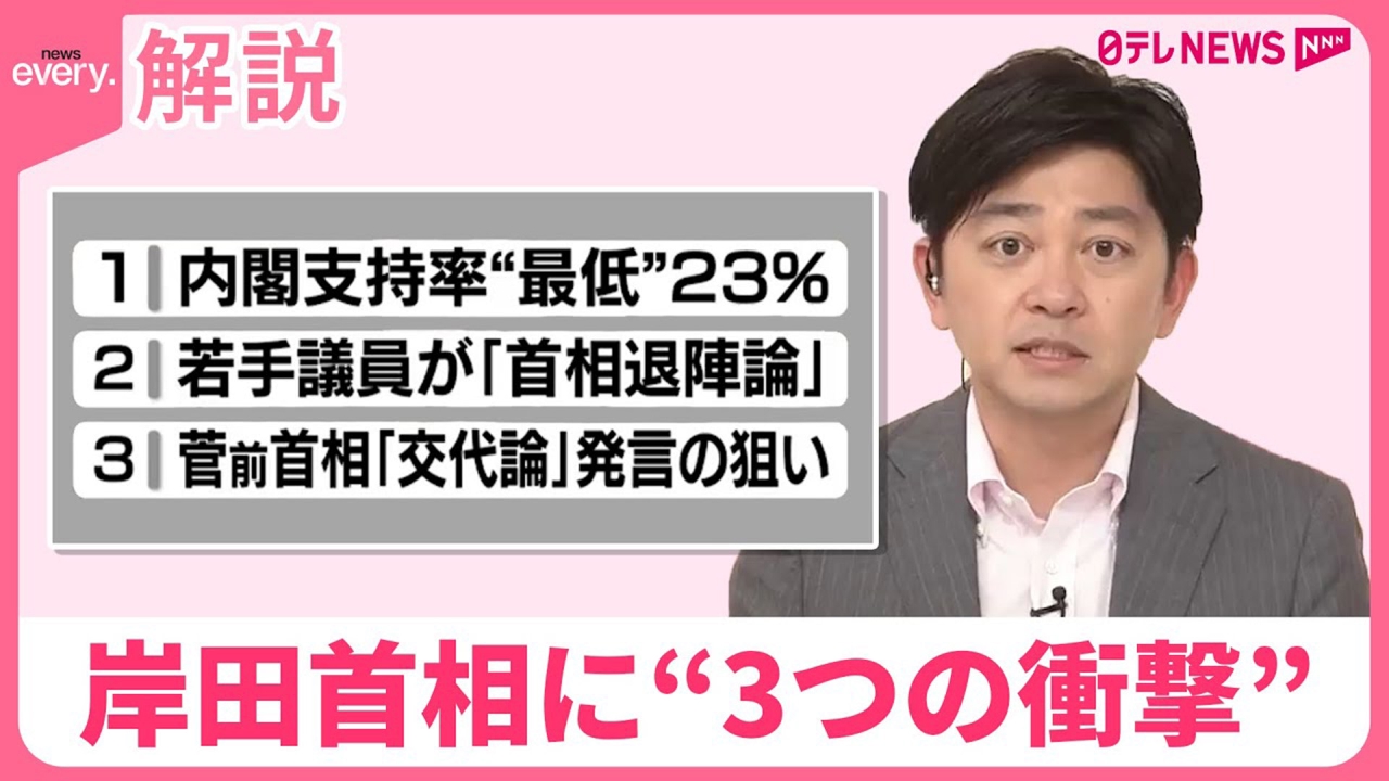 国会閉幕と同時に岸田首相への退陣論が噴出しています。口火を切ったのは菅前首相で、9月の総裁選に向けたキーマンの発言だけに、衝撃が広がっています。また、この菅前首相の発言を含めて“3つの衝撃”が週末、岸田政権を襲いました。政治部官邸キャップの平本典昭記者が、3つのポイントについて解説します。 (2024年6月24日放送「news every.」より)