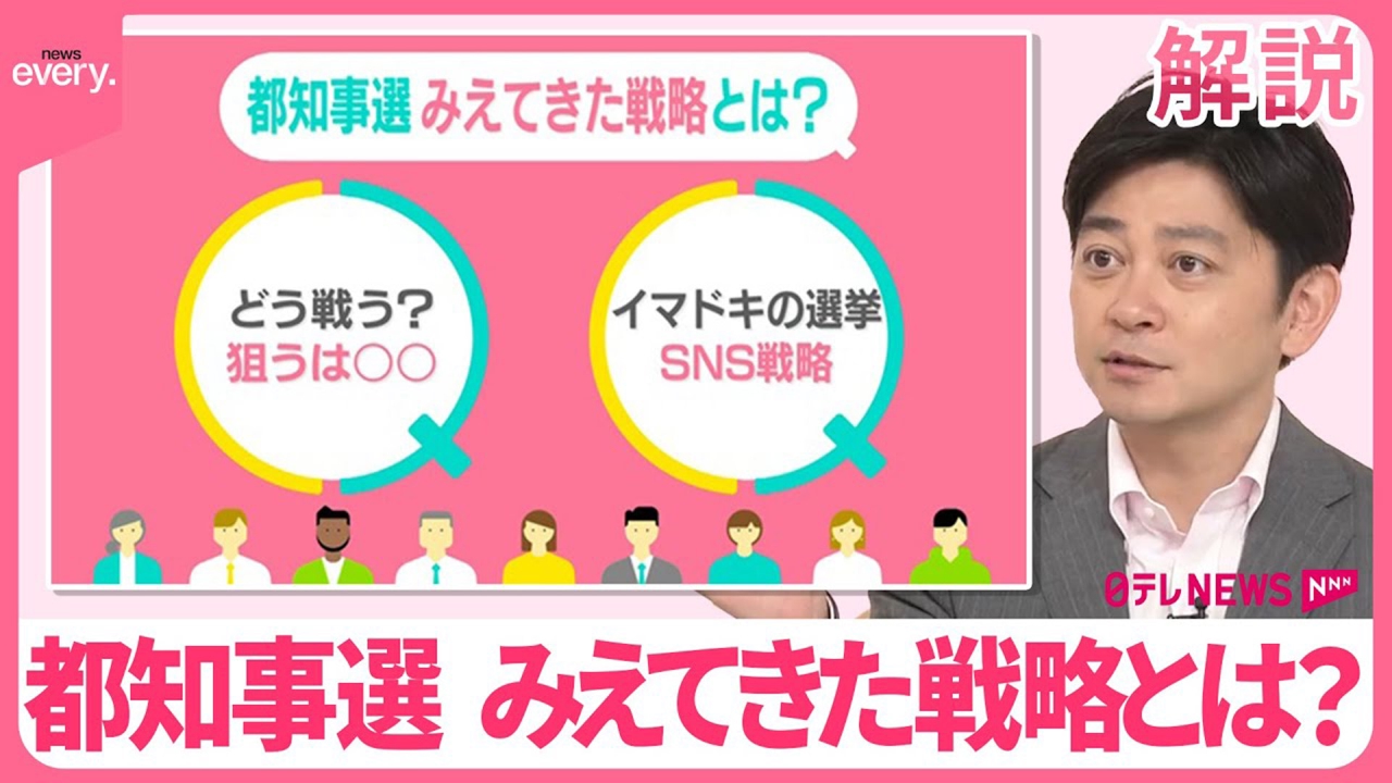 初の週末を経た東京都知事選挙。都知事の小池百合子氏、広島・安芸高田市の前市長の石丸伸二氏、元航空幕僚長の田母神俊雄氏、前参議院議員の蓮舫氏の4候補は、どのような戦い方をしているのでしょうか? 演説のスタイルやSNS戦略を比べました。 (2024年6月24日放送「news every.」より)