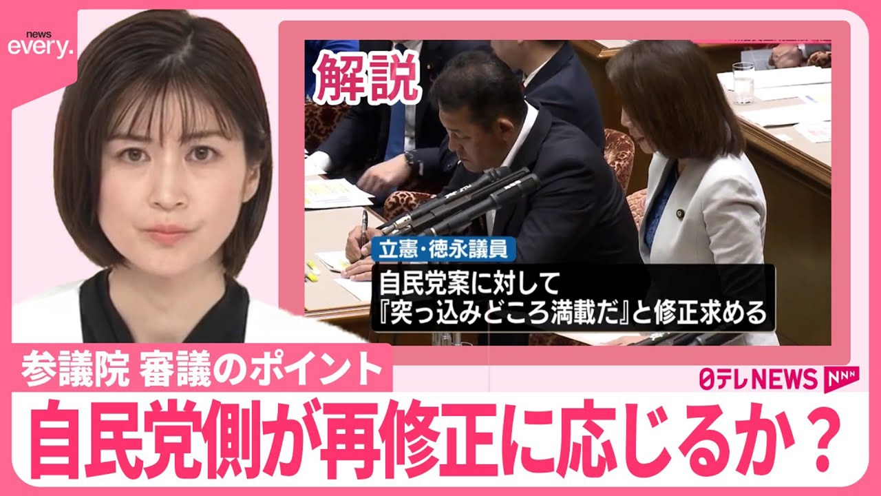 今の国会の最重要法案、政治資金規正法の改正をめぐる審議の舞台が参議院へと移りました。野党側は自民党案の再修正を求めています。国会記者会館から政治部の門脇明伸記者が解説します。 (2024年6月10日放送「news every.」より)