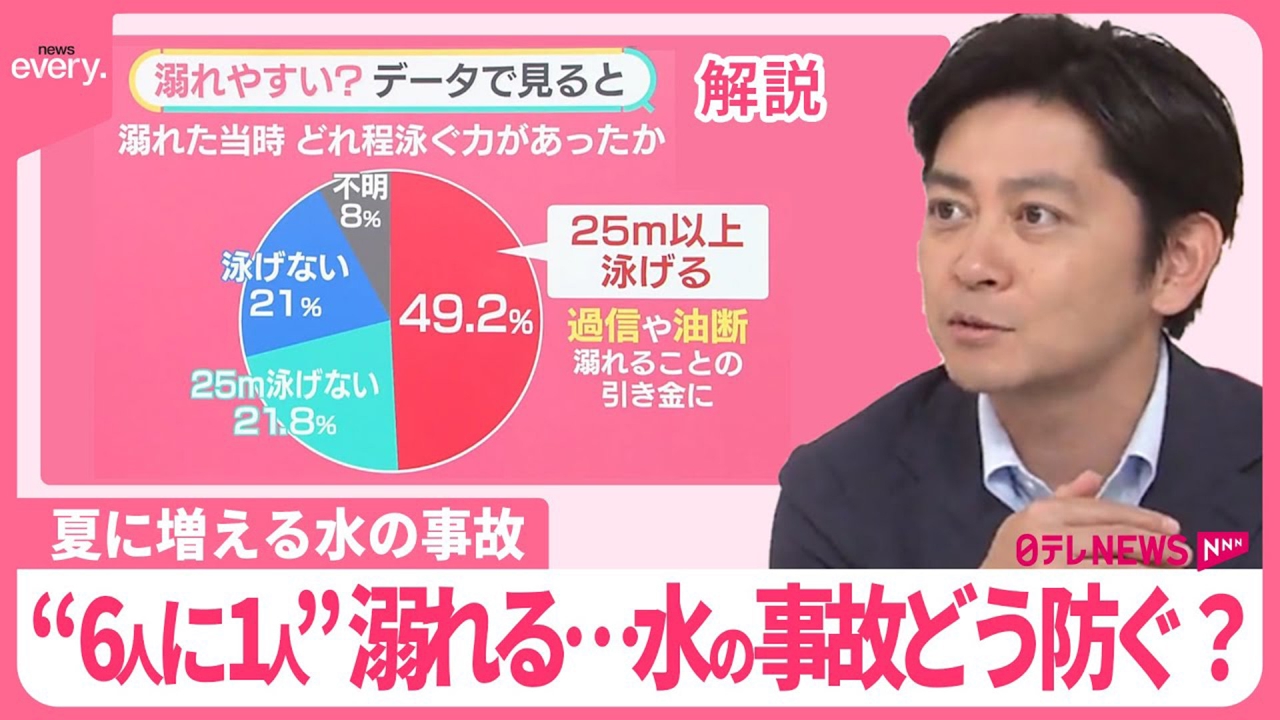 本格的な海水浴のシーズンを目前に、“6人に1人”が溺れるという調査結果が公表されました。どんな人がどんな場面で溺れるのでしょうか?怖い経験をもとに、水の事故から身を守るために“しない”こと、溺れないために意識できることを考えていきます。 (2024年6月19日放送「news every.」より)