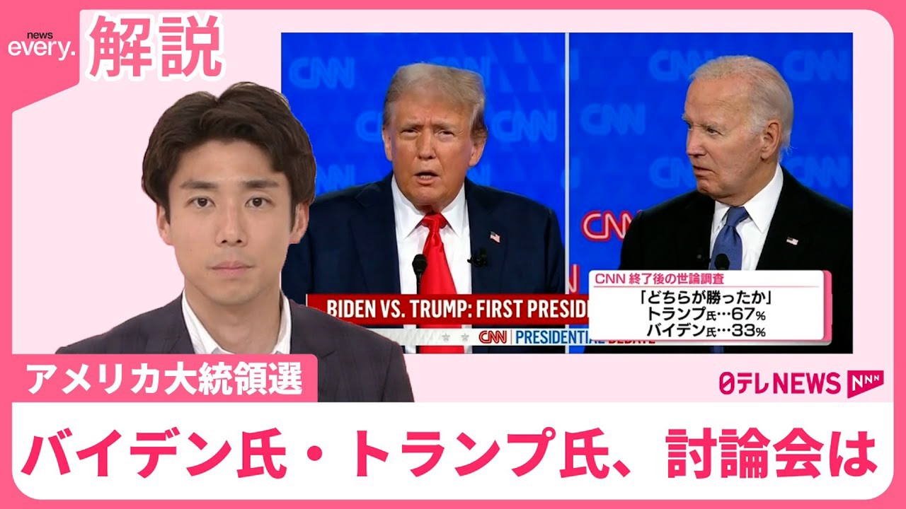 アメリカ大統領選の討論会は、どのような雰囲気だったのでしょうか。 討論会を取材した、ワシントン支局の増田理紗記者が解説します。 (2024年6月28日放送「news every.」より)