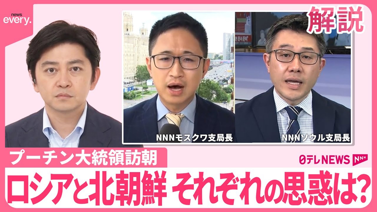 北朝鮮を訪れているロシアのプーチン大統領と金正恩総書記との首脳会談が行われました。NNNモスクワ支局長の平山晃一記者、そしてNNNソウル支局長の横田明記者が、北朝鮮・ロシア、それぞれの思惑について解説します。 (2024年6月19日放送「news every.」より)