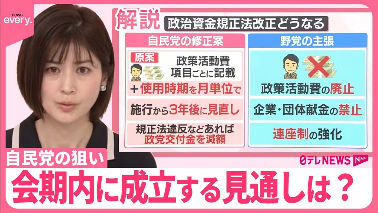 国会では政治資金規正法の改正をめぐる与野党の協議が本格化しています。29日、自民党は自らの案を修正した案を示しましたが野党側は不十分だと反発しました。自民党が示した修正案について元の案からどのような点を変えたのか内容を整理します。(2024年5月29日放送「news every.」より)