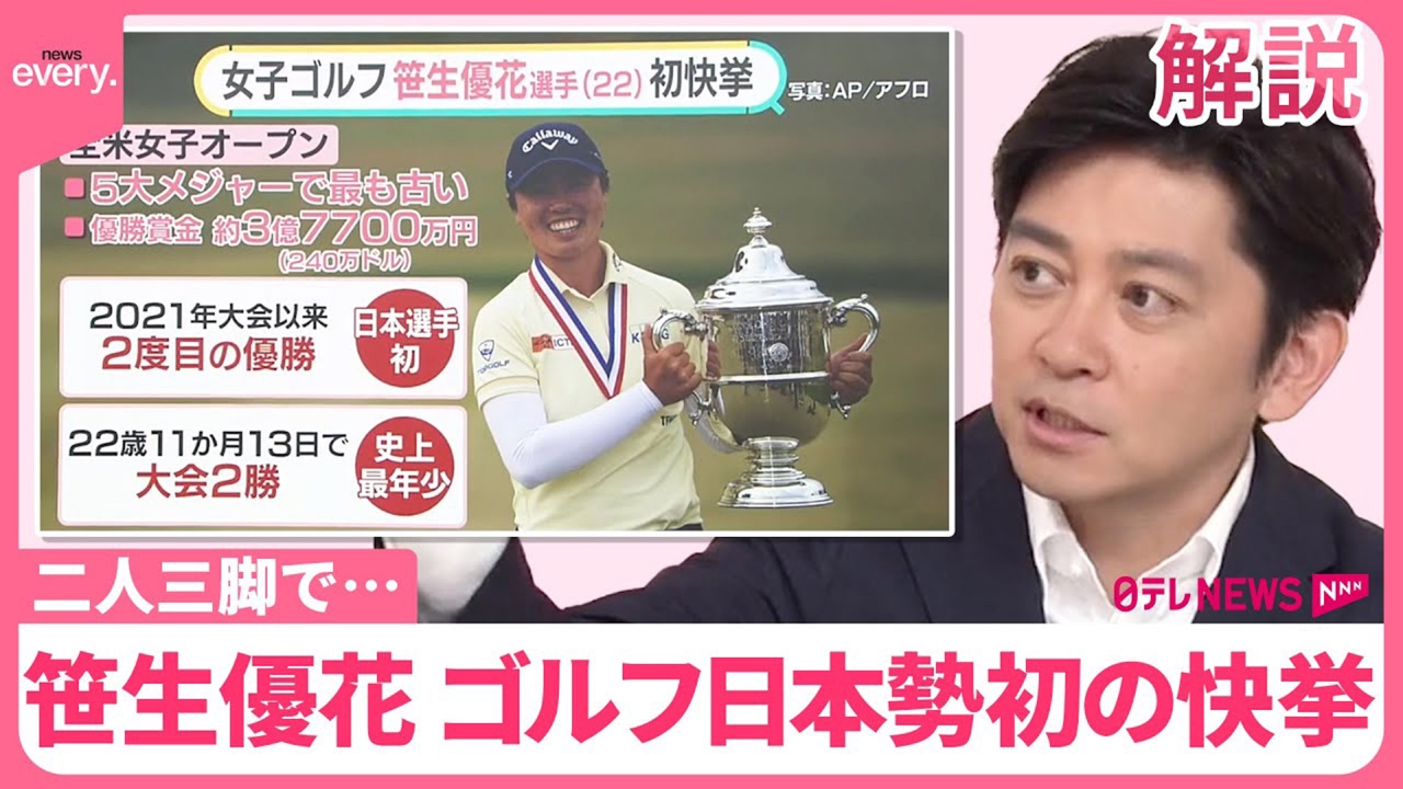 女子ゴルフの笹生優花選手(22)が、その世界一を決める5大会で最古の歴史を持つ全米女子オープンで、最年少で2度目の優勝を果たしました。なぜ強いのか、この大会での優勝はどれほどすごいのか。高校時代のコーチを務めた井上透さんに聞きました。 (2024年6月3日放送「news every.」より)